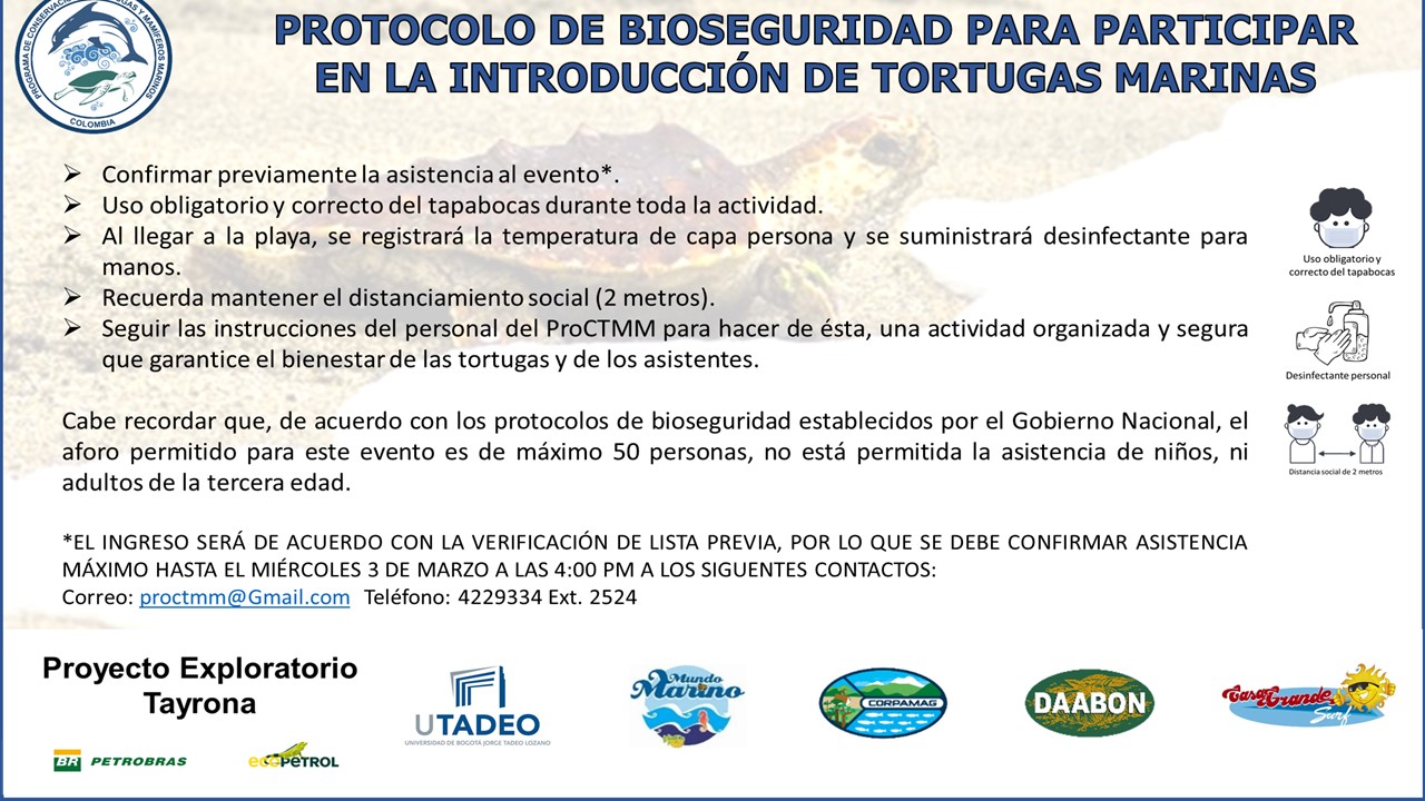 Como parte del Día Mundial de la Vida Silvestre, que se celebró el pasado 3 de marzo, este viernes 5 de marzo, a las 10:00 a.m., se llevará a cabo, en la playa de Casagrande Surf (Mendihuaca - Km 27 vía Riohacha), el XX evento de Introducción al medio natural de juveniles de tortugas marinas, organizado por el Programa de Conservación de Tortugas y Mamíferos Marinos (ProCTMM), el cual cuenta con el apoyo de Utadeo Santa Marta, el Proyecto Exploratorio Tayrona (Petrobras – Ecopetrol), el Acuario Mundo Marino, Grupo Daabon y Corpamag, aliados fundamentales de este proceso.