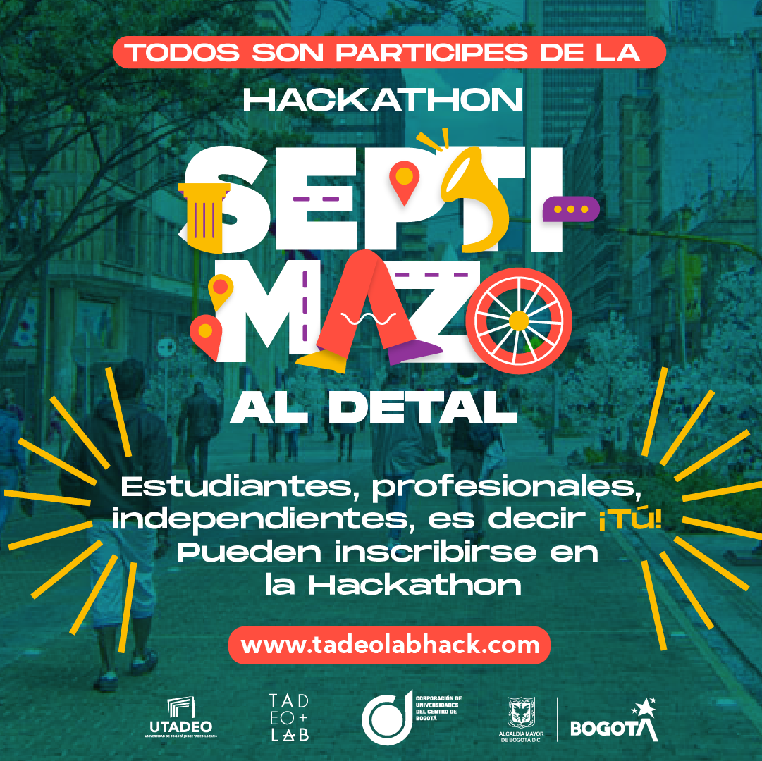 Durante una semana, 200 participantes inscritos en grupos interdisciplinares hicieron parte de la hackathón social “Septimazo a Detal”, que estuvo centrada en la relación directa con el espacio público y los entornos patrimoniales en el Centro de Bogotá, para hallar soluciones a las problemáticas, en este caso, asociadas con la vida ciudadana en la Carrera Séptima (entre la Plaza de Bolívar y la Calle 24), con el propósito de pasar de una idea a una propuesta real de mejora social. Dos estudiantes de Utadeo integraron el grupo ganador del reto número uno del evento:“Carrera Séptima”.