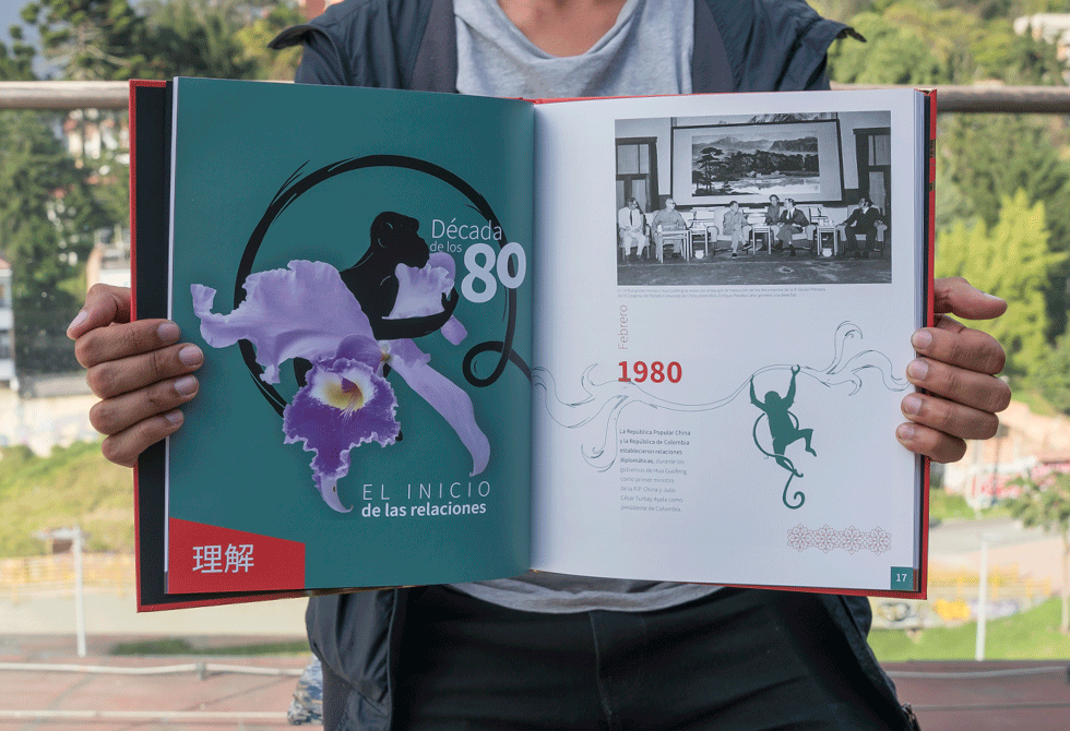 Al mejor estilo del ciclismo, en un trabajo contrarreloj de un mes, Santiago Reyes, Dayanna Sánchez y Mateo Reina, estudiantes de séptimo semestre del programa de Diseño Gráfico de Utadeo, asumieron una titánica tarea, la de desarrollar el concepto e ilustración de la primera edición del libro conmemorativo de los 40 años de relaciones diplomáticas entre Colombia y China, de la Cámara Colombo China y la Embajada de China en Colombia, editado por Equilibrio Gráfico Editorial Ltda. La publicación fue lanzada el 13 de febrero, en un evento que contó con la presencia del embajador chino Lan Hu y de empresarios afiliados a la Cámara.