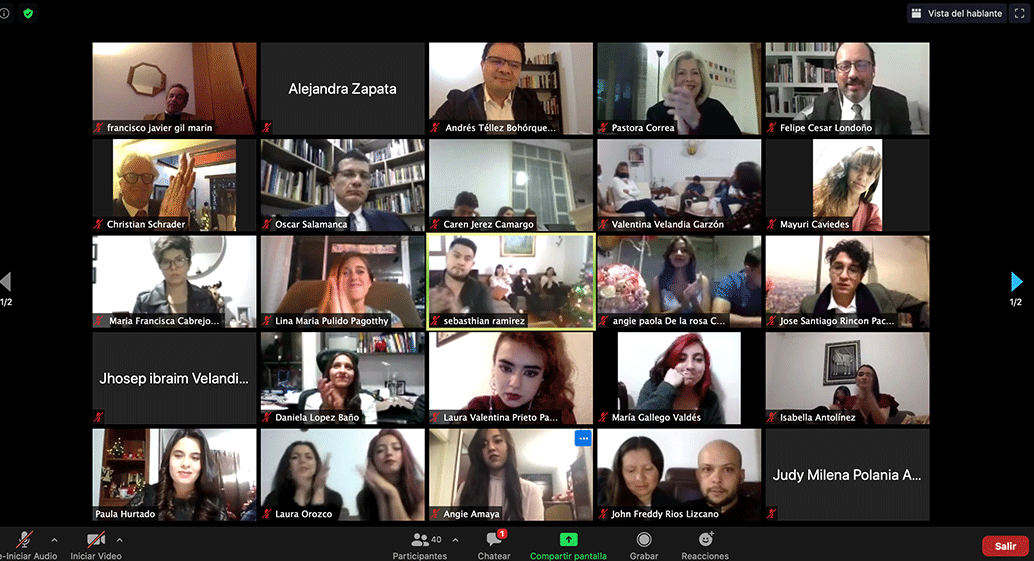 “Han sido meses difíciles; nos hemos enfrentado a retos que no habíamos tenido en frente, no solo por la pandemia sino por múltiples situaciones sociales y políticas que nos embargan y que nos generan enormes preocupaciones. Por eso hoy celebramos que ustedes salgan al mundo profesional, no solamente formados como excelentes profesionales sino como maravillosos ciudadanos. Salir adelante, construir esperanza y generar solidaridad dependen de que ustedes puedan sacar adelante este país y a esta sociedad”, fue el mensaje que entregó Santiago Trujillo antes de la intervención.