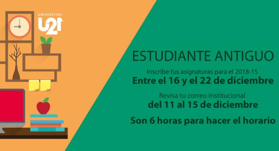 Recuerda que los turnos para inscribir las asignaturas van del 16 al 22 de diciembre, por ello te recomendamos estar pendiente de tu correo electrónico institucional o personal del 11 al 15 de diciembre, para que revises la fecha y hora que te fue asignada la cita, y así, realizar el horario. Te sugerimos no dejarla pasar, pues esto afectará la disponibilidad de tu oferta académica y generará recargos en el valor de tu matrícula.