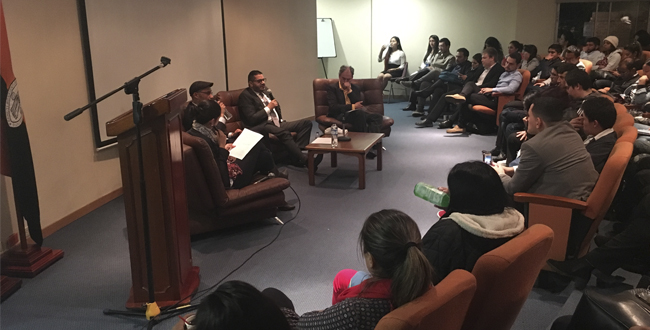 El conversatorio se llevó a cabo en el Auditorio Virrey Solis de la universidad anfitriona. Según los organizadores, este ecuentro busca que los estudiantes, mediante la discusión argumentativa, conozcan diferentes posturas en relación a esta temática.