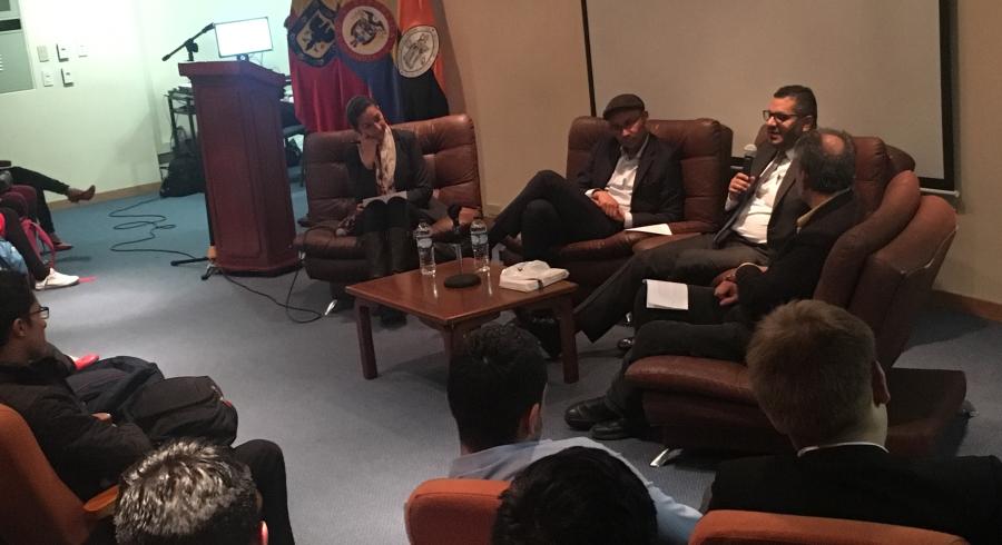 El panel de ponentes estuvo conformado por los expertos Roberto Gutiérrez de la Universidad de los Andes, Dustin Tahisin Gómez Rodríguez del Instituto Geográfico Agustín Codazzi y Luz Karime Hernández Navarrete, directora del Programa de Administración de Empresas de la Universidad San Buenaventura, quien moderó el evento.