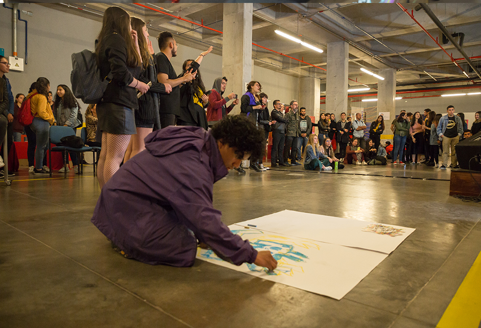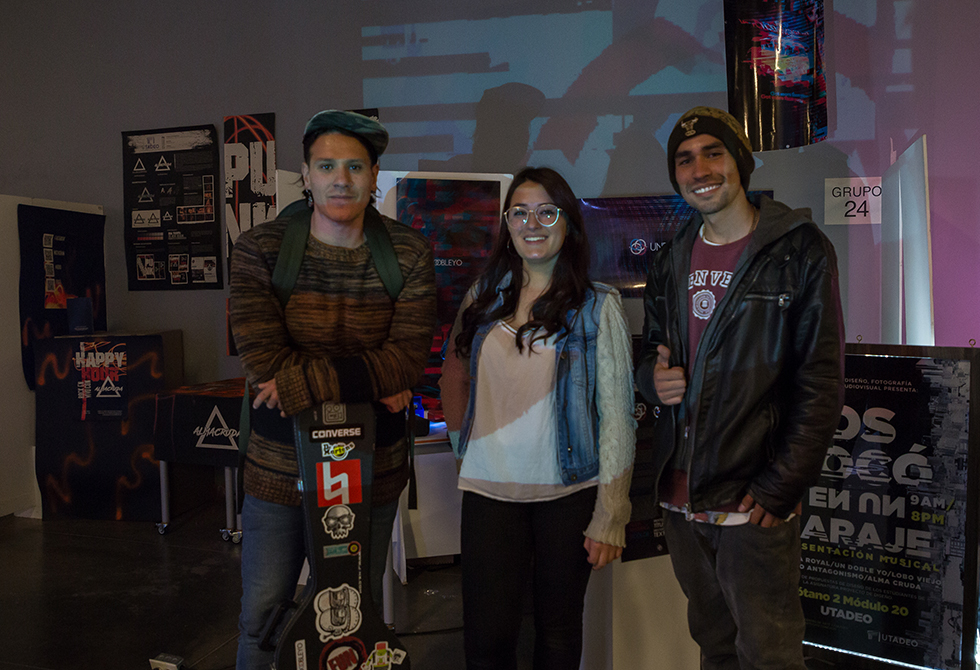 Javier Cucalón, vocalista y guitarrista de la banda “Un doble yo”, calificó las propuestas de nuestros estudiantes como increíbles y excepcionales: “la Universidad Jorge Tadeo Lozano, particularmente en la Facultad de Artes y Diseño, está a la vanguardia de Colombia y el mundo. Las propuestas están más que a la altura. Se nota completamente la creatividad, el empuje y las ganas de sacar cosas distintas”. En el caso de su banda, dos grupos trabajaron en torno a la imagen: “ellos hicieron una lectura completa de lo que queríamos como banda y de lo que sentían en los ensayos y cuando hablaban con nosotros”, agregó.