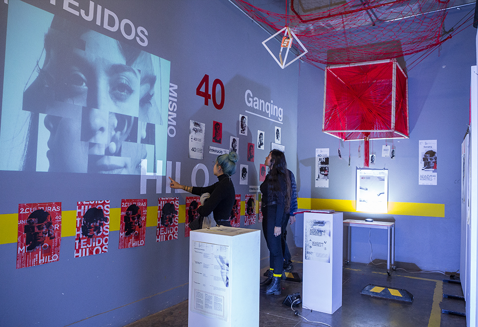 Por su parte, Angie Martínez y su grupo nos demostraron cómo los hilos pueden unir el pasado, presente y futuro de dos países lejanos geográficamente y diferentes desde su cultura, tal como sucede con China y Colombia. La apuesta de estos tadeístas se centró en la empatía al momento de unir los telares de seda del país asiático y los de sus homólogos de las comunidades indígenas. Con una intervención del espacio, dominada por fotografías en abstracto y figuras geométricas tejidas en hilo rojo, esta apuesta habló por sí sola del trabajo de investigación en torno a las técnicas y elementos milenarios de ambos pueblos: “al final las cosas pequeñas son las que más nos unen y eso fue lo mas lindo del proyecto”, destacó la tadeísta acerca del diálogo permanente que tuvieron con el Instituto Confucio durante el proceso.