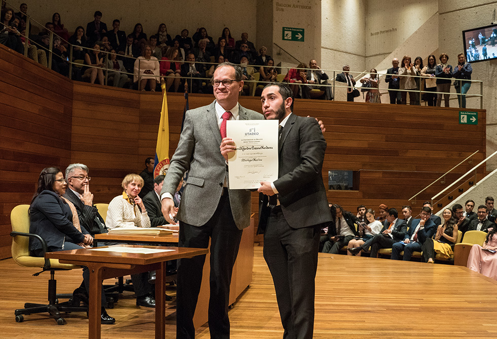 Agregó que la responsabilidad más grande, más allá de recibir el diploma, es ejercer con ética la profesión: “representemos a nuestra Universidad con mucho orgullo y dejemos marca en todo lugar que pisemos, que nos recuerden por las maravillosas personas y profesionales en las que nos hemos convertido, unos grandes tadeístas”, fue la invitación que hizo Bernal a sus compañeros de graduación.