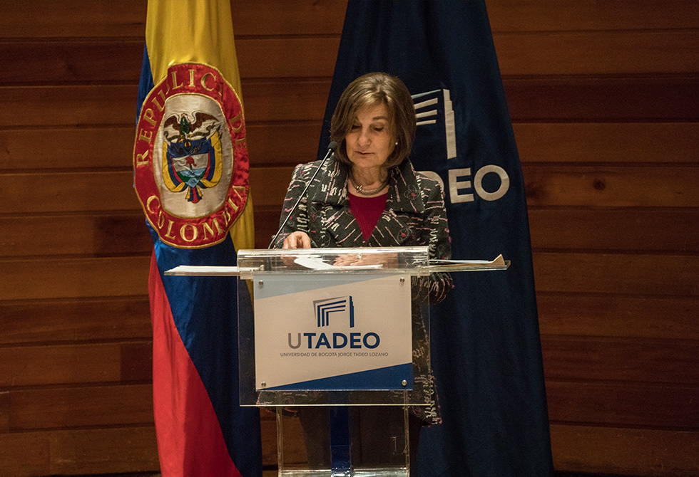 Esta visión la comparte la rectora de Utadeo, Cecilia María Vélez, quien en su discurso a los estudiantes les agradeció la confianza depositada por ellos y sus familiares a Utadeo, al seleccionarla como su alma máter: “con sus proyectos e ideas podrán incidir en las transformaciones de sus contextos, regiones y el país”.