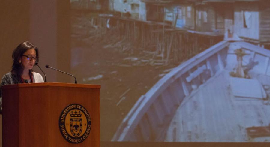 En su ponencia, Adriana Botero, profesora de la Escuela de Diseño de Producto, tiene un vínculo íntimo con su público. El evento surge en un aire de confianza, con un relato literario declamado por la profesora. Botero cuenta que se inspiró en el libro de Eduardo Galeano “Memorias del fuego”, para crear las narraciones.