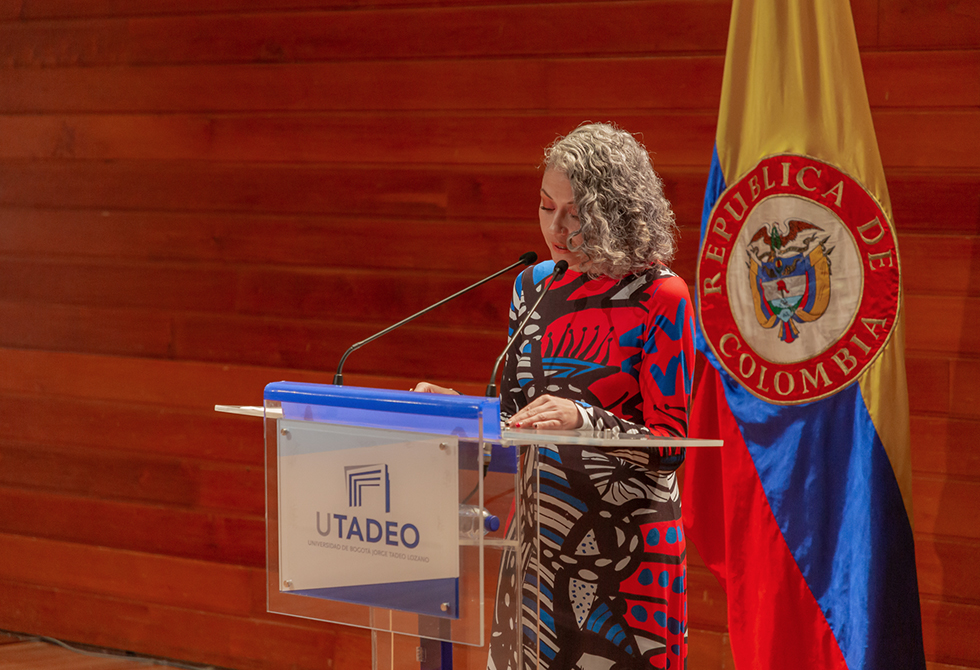 En representación de los graduandos, Natalia Montes de Oca Jaimes, graduanda de la Maestría en Gestión y Producción Cultural y Audiovisual, se dirigió a sus compañeros y familiares resaltando el esfuerzo que implica trabajar y estudiar para sacar adelante un posgrado. “Todos los esfuerzos que nos trajeron hasta aquí confluyen en un lugar llamado transformación. Deseamos que nuestra historia como país cambie, que nuestras memorias de violencia se transformen en memorias de paz. Esta esa es la oportunidad que tenemos el privilegio de recibir hoy, y por la que estamos agradecidos”.