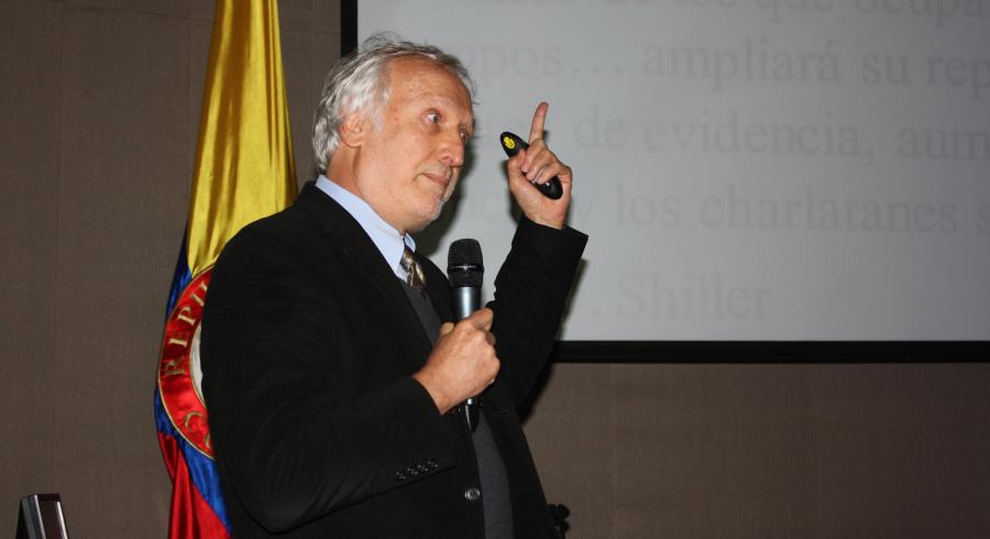 El pasado 20 de noviembre se lanzó oficialmente el programa de Maestría en Modelado y Simulación, iniciativa académica conjunta de la Universidad Jorge Tadeo Lozano y la Universidad Central. El evento se realizó en la sala Oval de la Tadeo y contó con la presencia del Vicerrector Académico, Diógenes Campos; el Decano de la Facultad de Ciencias Naturales e Ingeniería, Isaac Dyner; el Director del Departamento de Ciencias Básicas y también director del programa de esta maestría, Favio Cala Vitery; el Vicerrector Académico de la Universidad Central, Fernando Chaparro y José Fernando Izasa, ex rector de la Tadeo y actual docente en la Universidad Central.