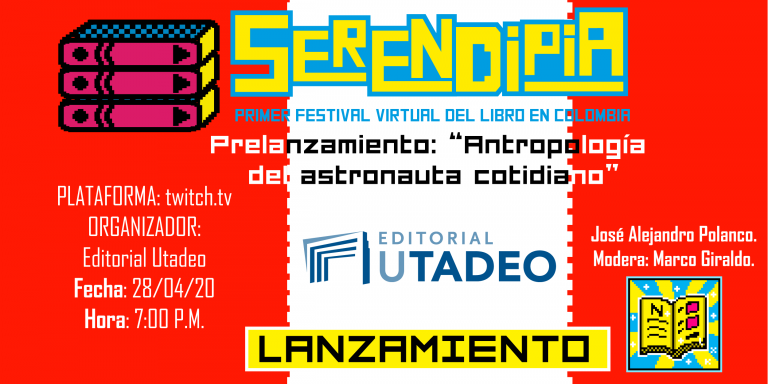 En un segundo momento, el martes 28 de abril, de 7:00 a 8:00 p.m., se llevará a cabo el lanzamiento del libro “Antropología del Astronauta Cotidiano”, evento que se desarrollará mediante una charla con el autor de esta publicación, José Alejandro Polanco, y el director de la Editorial Utadeo Marco Giraldo Barreto (Ingresa aquí al evento).