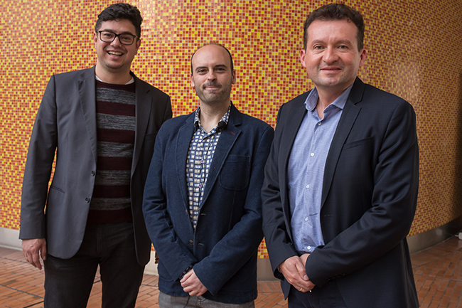 De izquierda a derecha, Jorge Herrera (Director (e) del programa de Ingeniería en Energía; Asier Ibeas (profesor invitado de la Universidad Autónoma de Barcelona), y Edgar Vargas (director del Departamento de Ingeniería)