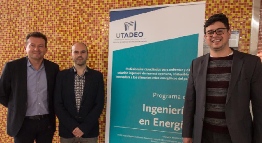 Garantizar la eficiencia, sostenibilidad y competitividad del sistema energético colombiano desde todas sus fuentes es, precisamente, el gran reto que enfrentarán los egresados de Ingeniería en Energía de Utadeo, programa que tuvo su pre-lanzamiento el pasado jueves 14 de febrero, con la conferencia del profesor invitado de la Universidad Autónoma de Barcelona, Asier Ibeas, quien brindó un panorama sobre el futuro de la energía en las próximas tres décadas.