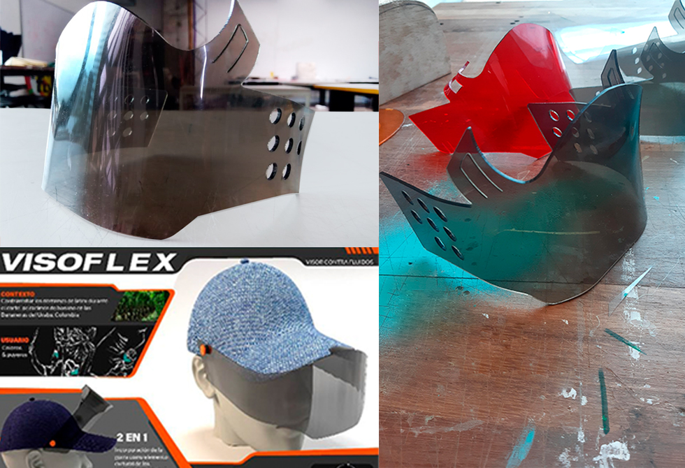 ANTEX (Daniel Bonilla, Jonathan Aldana y Carol Pérez): Desarrollaron un visor que se asemeja a los que hoy en día, fruto de la pandemia, se están utilizando, pero el gran valor diferencial de este grupo fue incluir un sistema de ventilación para que circulara el aire, teniendo en cuenta la temperatura y la humedad de la región del Urabá.