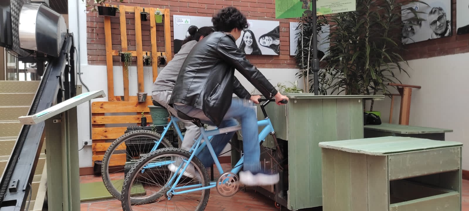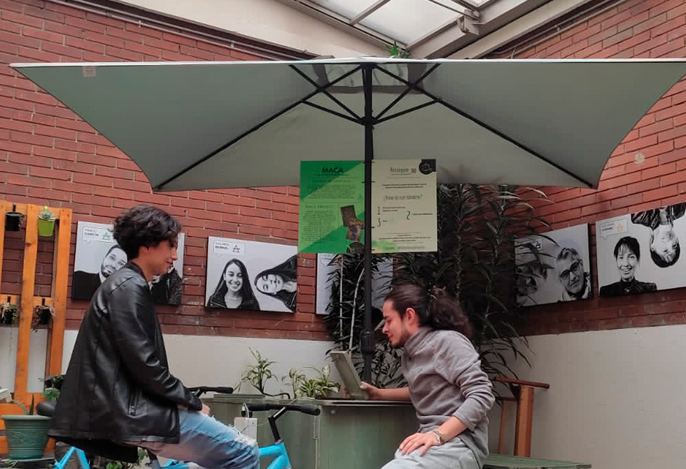 Este dispositivo es una mesa que tiene como finalidad el aprovechamiento de residuos orgánicos que se producen en el CHB, para la creación de compostaje, el cual beneficiará al huerto urbano “El Castillo-MACA”, generando una interacción con las personas, para que ellas puedan acercarse, depositar sus residuos orgánicos y a través de un par de ciclas que la mesa tiene fijadas puedan pedalear para mezclar dichos sólidos, convertirlos en compostaje y al mismo tiempo producir energía para cargar sus dispositivos móviles.