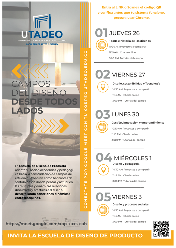 "El nombre del evento tiene dos sentidos metafóricos: uno es el trabajo que hacemos nosotros para abordar diferentes campos del diseño y el otro es que podemos seguir construyendo academia desde donde estemos, superando las fronteras físicas circunscritas a un salón de clase. Hemos enriquecido el espacio virtual con voces de muchos lados", señala Santiago Forero Lloreda, director de la Escuela de Diseño de Producto de Utadeo.