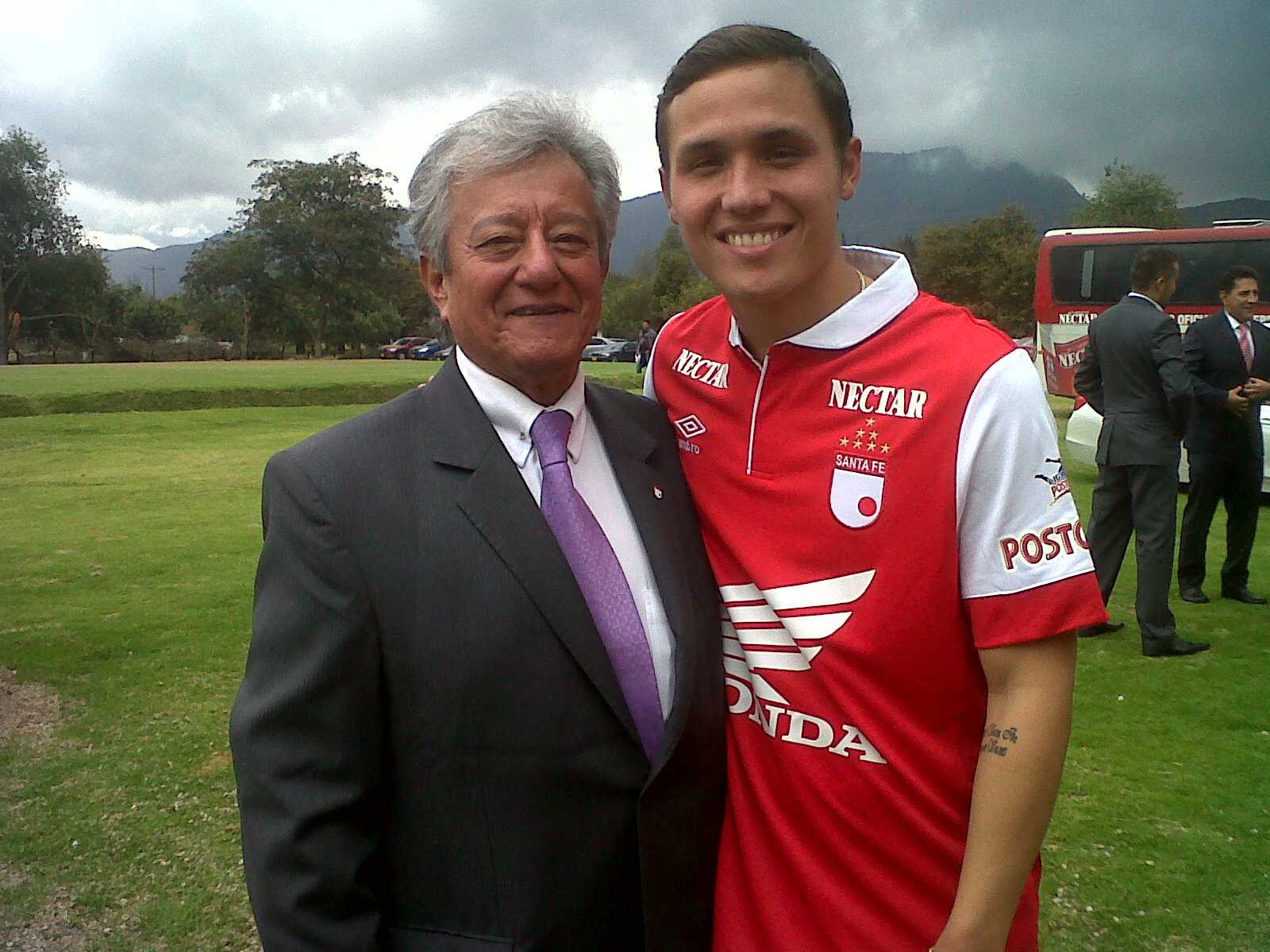 José Jairo Vásquez y el presidente de Santa Fe, César Pastrana.