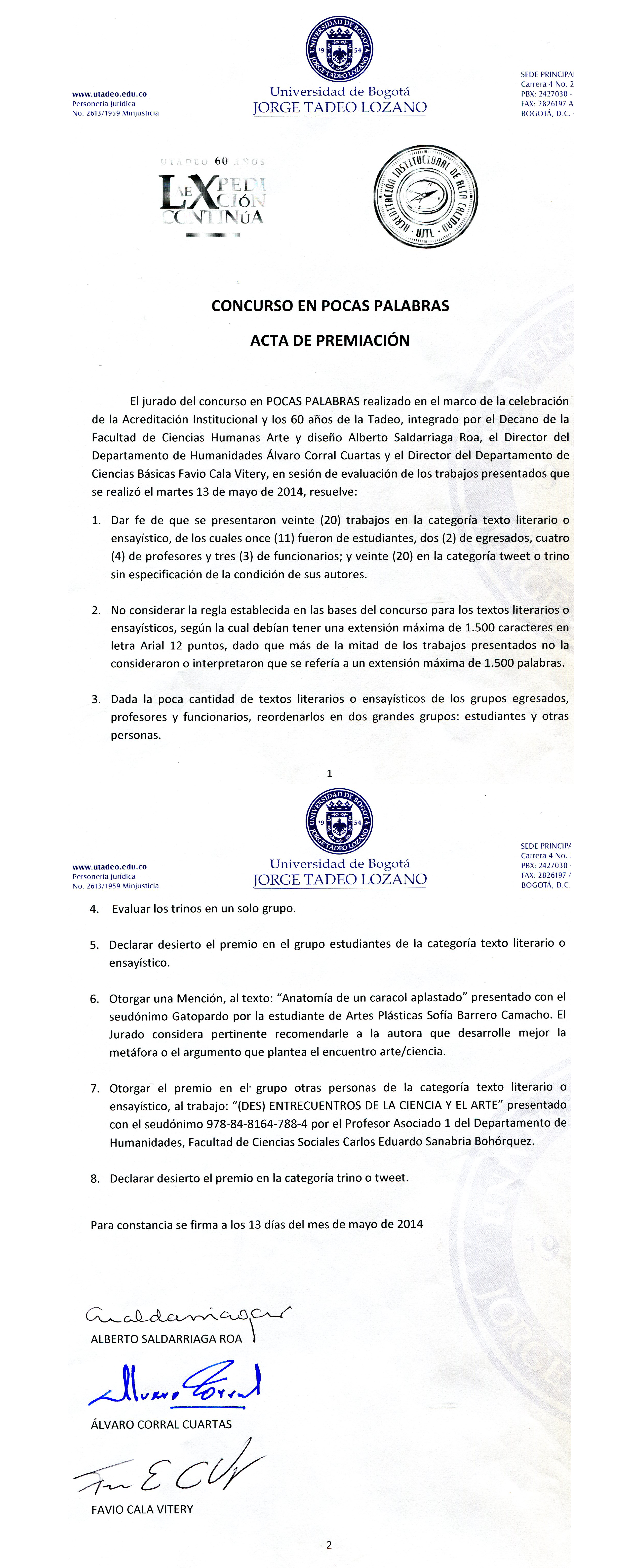 Conozca el acta de premiación aquí.
