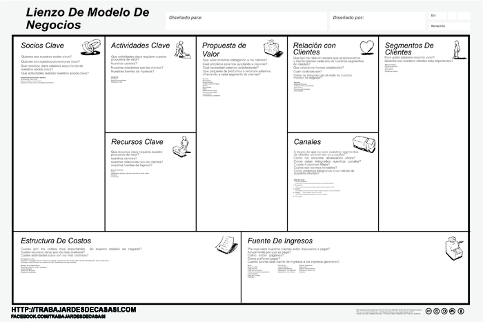 Modelo Canvas para el diseño de modelos de negocios. Fuente: Trabajar desde casa
