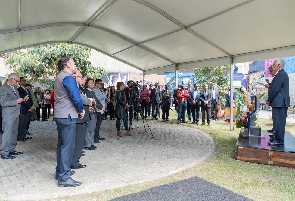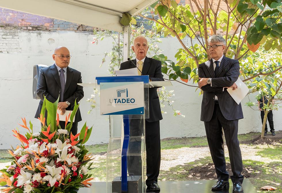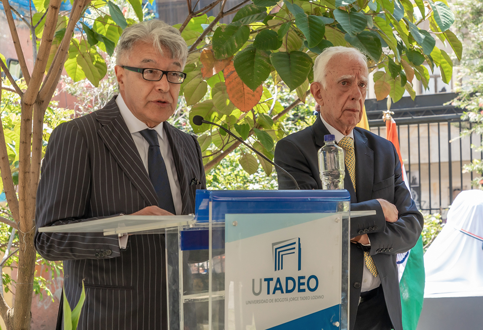 Por su parte, Carlos Sánchez Gaitán, rector de la Universidad, mencionó que "A partir de hoy se abre un espacio para la contemplación y la reflexión en nuestra institución que ha sido símbolo de conocimiento, de inclusión, que ha estado comprometida con continuar la obra que inició la Expedición Botánica y que en su nombre recuerda a un mártir por la Independencia de nuestro país, don Jorge Tadeo Lozano".