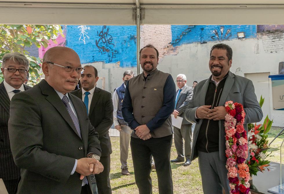 El embajador de la India, señor Vanlalhuma, agradeció a la Universidad el interés por tener un lugar destacado para este símbolo de la paz: "Mahatma Gandhi, a quien se le conoce por sus luchas perseverantes hacia un activismo pacífico, fundado en la No Violencia y la fuerza de las convicciones. Para él, la paz era el camino con que se labraban los propósitos para alcanzar la tan anhelada independencia, sin recurrir a la violencia que tanto ha marcado al mundo. Hoy 30 de enero es el día de los mártires en mi nación y se conmemora el día de la muerte de Mahatma Gandhi. En esta fecha recordamos su contribución a la India y sus sacrificios durante la lucha por la libertad. Los valores de Gandhi y muchos de sus métodos siguen siendo relevantes, dentro de sus ideas tuvo aportes no solo para la humanidad sino también para el medio ambiente, tanto para la India como para el mundo entero".