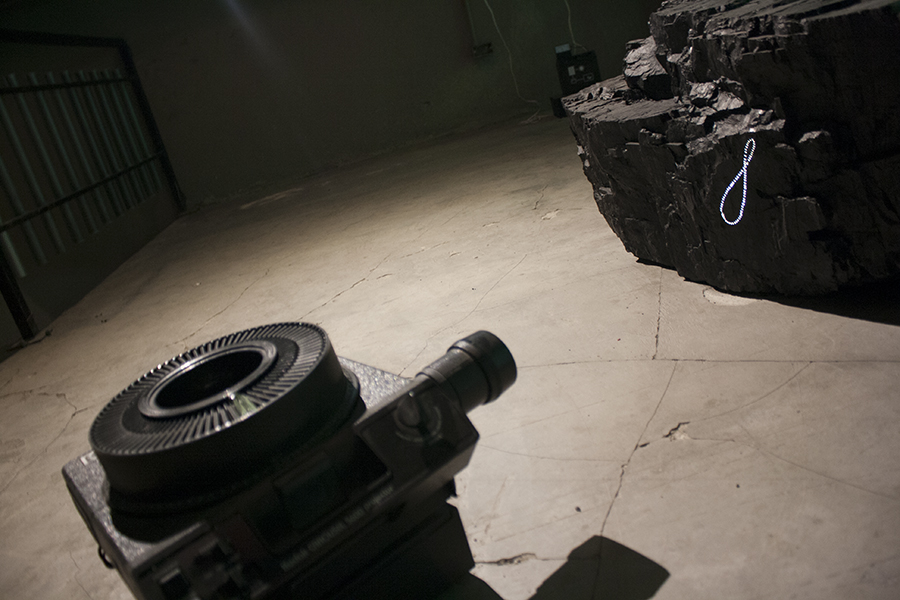 Proyector de diapositivas en el cuarto piso de la exposición.