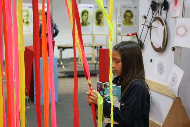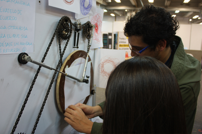 De igual manera, la física se tomó este espacio de experimentación. Echando mano de la cinética, grandes y chicos disfrutaron creando diferentes tipos de mándalas en hojas de papel, a partir de un pedal conformado por dos piñones y un par de brazos. Así mismo, la realidad virtual es protagonista con la interacción de captura de cuerpos en movimiento, implementando tecnología kinect, misma que se utiliza en las consolas de videojuegos, investigación que hace parte del Laboratorio Dancetek de Tadeo Lab, impulsado por los profesores Camilo Nemocón y Catalina Quijano.