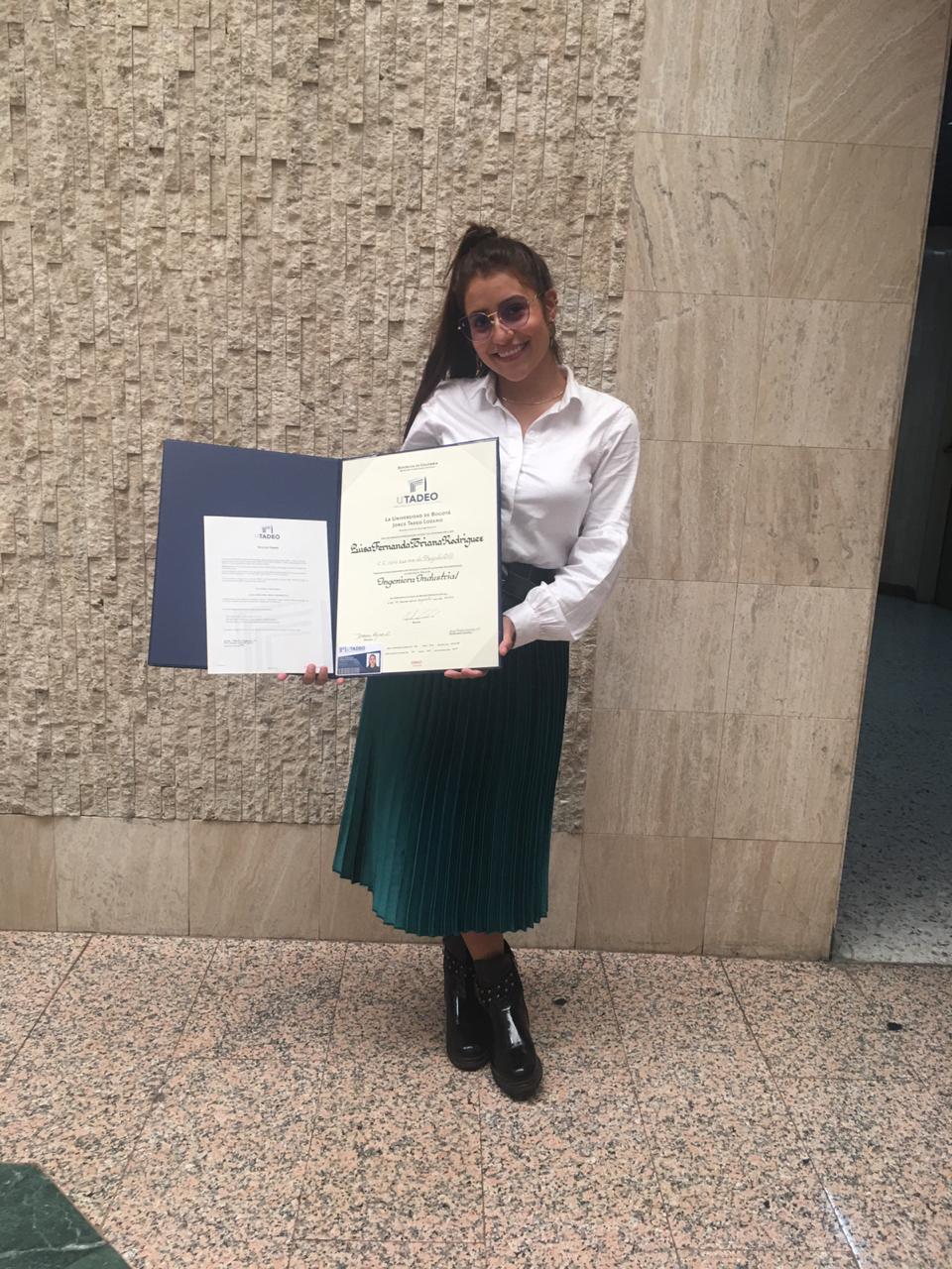 Pero las buenas nuevas del título profesional llegaron a cada rincón en el que se encuentran nuestros, ahora, egresados tadeístas, gracias a la gestión del personal de la Coordinación de Servicios Universitarios. Tal es el caso de Luisa Fernanda Triana, quien actualmente vive con su familia en Villavicencio, y allí recibió su título como ingeniera industrial. Sin embargo, para ella, su camino en la Tadeo continúa, pues iniciará sus estudios de Maestría en Ingeniería de Procesos, programa del que ya tiene algunos créditos adelantados, pues pudo realizar su coterminal de pregrado con asignaturas de este posgrado.