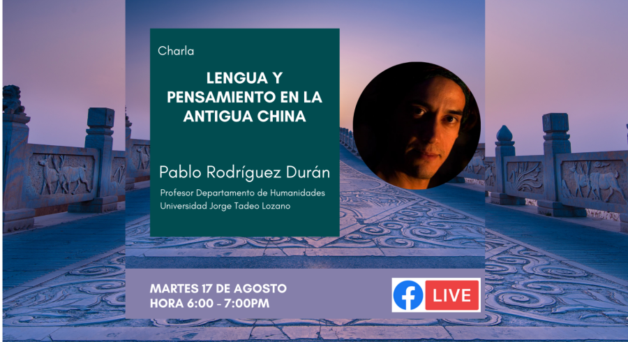 El martes 17 de agosto a las 6:00 p.m. tendremos la charla Lengua y Pensamiento en la Antigua China dictada por el profesor Pablo Rodríguez Durán, profesor de cátedra del Departamento de Humanidades de Utadeo.