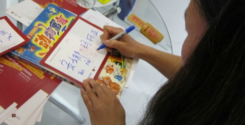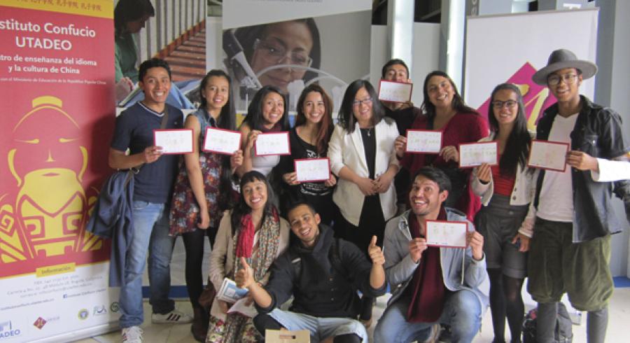 Tres días bastaron para que los asistentes de la FILBo 2015 se enamoraran de China, su idioma y su cultura. De la mano de nuestras profesoras más de 200 personas dieron sus primeros pasos en el idioma chino con historias tradicionales de China y escritura de caracteres. Familias, estudiantes de primaria y secundaria, adultos y grupos de curiosos se acercaron a conocer el Instituto Confucio UTadeo y sus propuestas tanto de eventos culturales como de cursos de idioma.