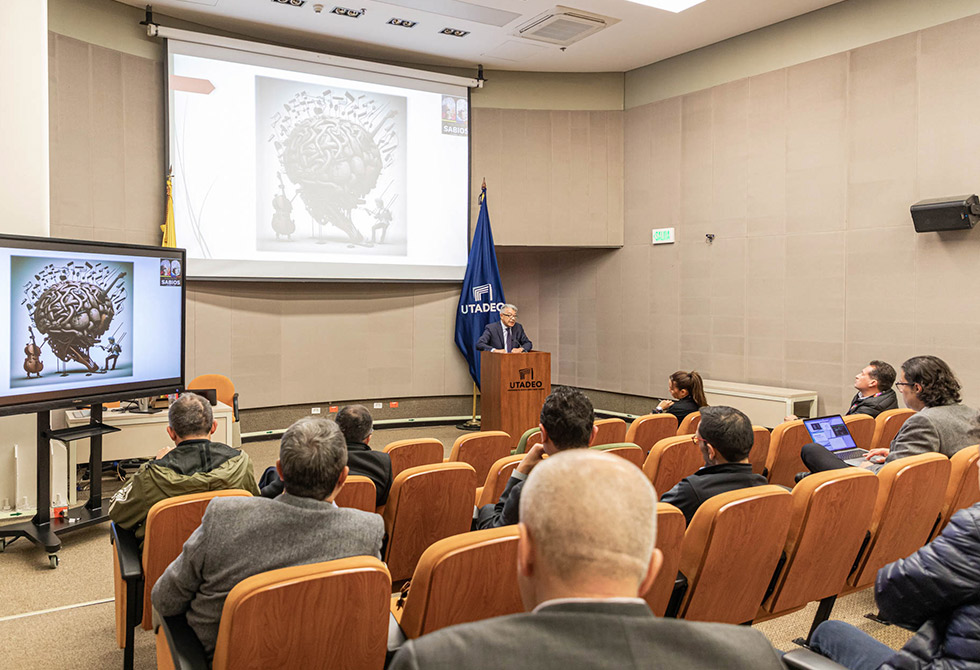 La conferencia con la que se entró en materia fue: “El arte de la cultura y la tecnología en el desarrollo de una sociedad del conocimiento”, dictada por el Dr. Edgar Puentes Melo, director del programa Construcción de Comunidad con la OFB (Orquesta Filarmónica de Bogotá). En su intervención, resaltó el impacto de estos campos como ejes centrales en la construcción de una sociedad apropiada del conocimiento, la innovación y la experimentación científica. “La creatividad es un proceso de selección natural. La relación de los ecosistemas y las comunidades construye nuestro complejo y diverso Patrimonio Cultural”.