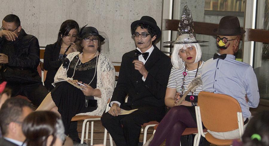 El pasado 31 de octubre se llevó a cabo la "Tétrica velada literaria" organizada por el club de lectura dirigido por la profesora Adriana Plazas. Cuentos de terror de Edgar Allan Poe, H. P. Lovecraft, Horacio Quiroga y Fernando Loaiza, entre otros, se leyeron a voz alta en la biblioteca en la víspera de todos los santos.