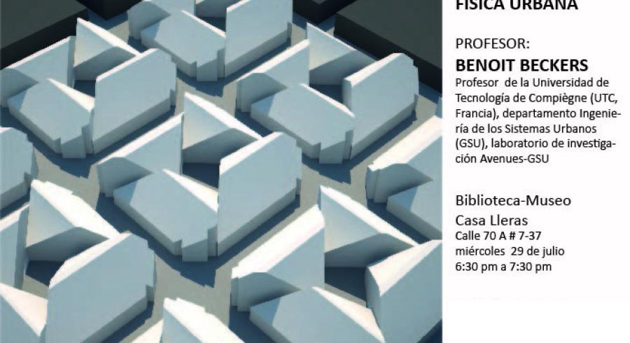 El profesor Beckers de la Universidad de Tecnología de Compiègne (UTC, Francia), departamento Ingeniería de los Sistemas Urbanos (GSU), laboratorio de investigación Avenues-GSU; con especialidad en: Energética urbana, radiación solar y luz natural en los proyectos arquitectónicos y urbanos; acústica arquitectónica; métodos geométricos de simulación digital; percepción de las ondas en su entorno físico y cultural; presenta la charla: Introducción a la Fisica Urbana el próximo 29 de Julio a las 6:30 pm en la Biblioteca Museo Casa Lleras.