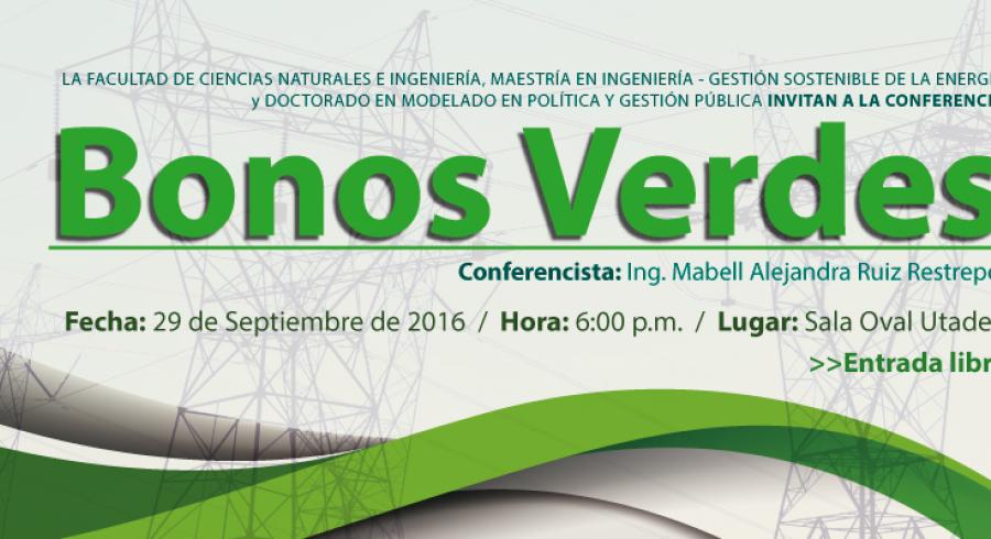 El próximo jueves 29 de septiembre, el Doctorado en Modelado en Política y Gestión Pública y la Maestría en Ingeniería - Gestión Sostenible de la Energía invitan a la charla Bonos Verdes, encuentro que busca dar un breve contexto sobre la situación actual del desarrollo sostenible, profundizar sobre el abordaje que se le está dando a cada uno de los programas e iniciativas en el tema sostenibilidad y brindar una reflexión sobre los retos actuales y futuros que tiene la ingeniería para aportar a la construcción de un país sostenible.