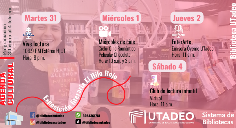 Prográmate con los eventos que trae el Sistema de Biblioteca UTadeo del 30 de enero al 04 de febrero 2023