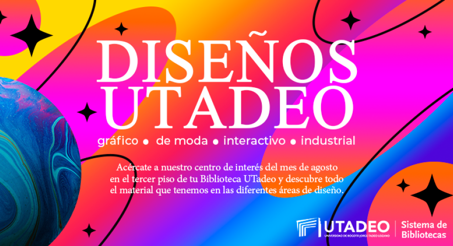 Acércate a nuestro centro de interés del mes de agosto en el tercer piso de tu Biblioteca UTadeo y descubre todo el material que tenemos en las diferentes áreas de diseño.