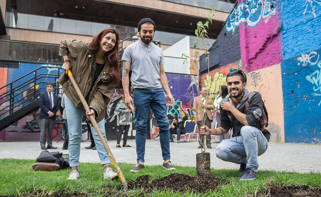 Con la sembratón se dio apertura a la zona verde del módulo 20 el jueves 28 de marzo en Utadeo. La actividad convocada por el Comité de Gestión Ambiental y el Colectivo Cultura ambiental, conformado por estudiantes de la Universidad, se realizó exitosamente con el acompañamiento del Jardín Botánico y la participación estudiantes y de administrativos de distintas áreas de la Universidad, quienes ayudaron a sembrar las distintas especies traidas para vestir de verde estas áreas.