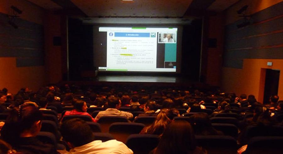 Cerca de 300 estudiantes del Programa de Contaduría Pública se reunieron en el Aula Máxima para escuchar la Video Conferencia Internacional: Competencias profesionales en contaduría requeridas por el mercado laboral.