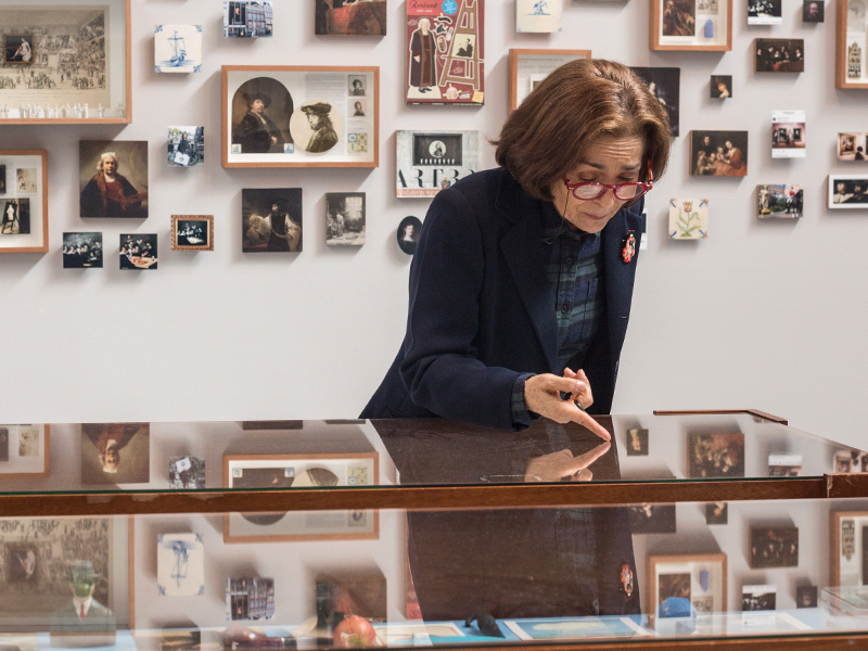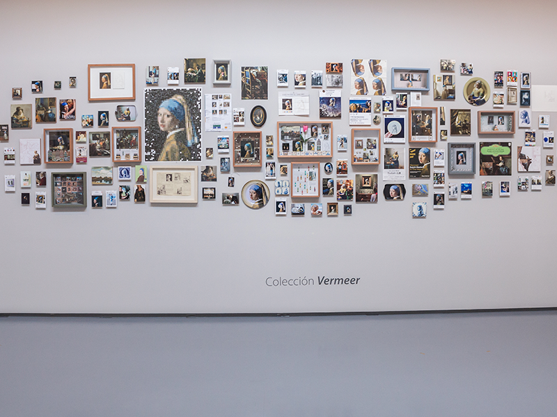 Una mujer de rostro dulce y auras azules nos observa desde la pared norte del Museo. La joven de la perla de Vermeer mira, pregunta, inquieta y atrae. Sus aretes parecen ser un magneto que nos invita a conocer, en esta exposición, toda una colección azul, perla, blanca y luminosa de platos, páginas de libros, postales, pantallazos de redes sociales y bisutería con representaciones de esta obra de arte. “La joven de la perla es para muchos el icono del arte. Para mí, verla a ella y a Las meninas de Velázquez es mucho más emocionante que ver La Monalisa”, asegura.