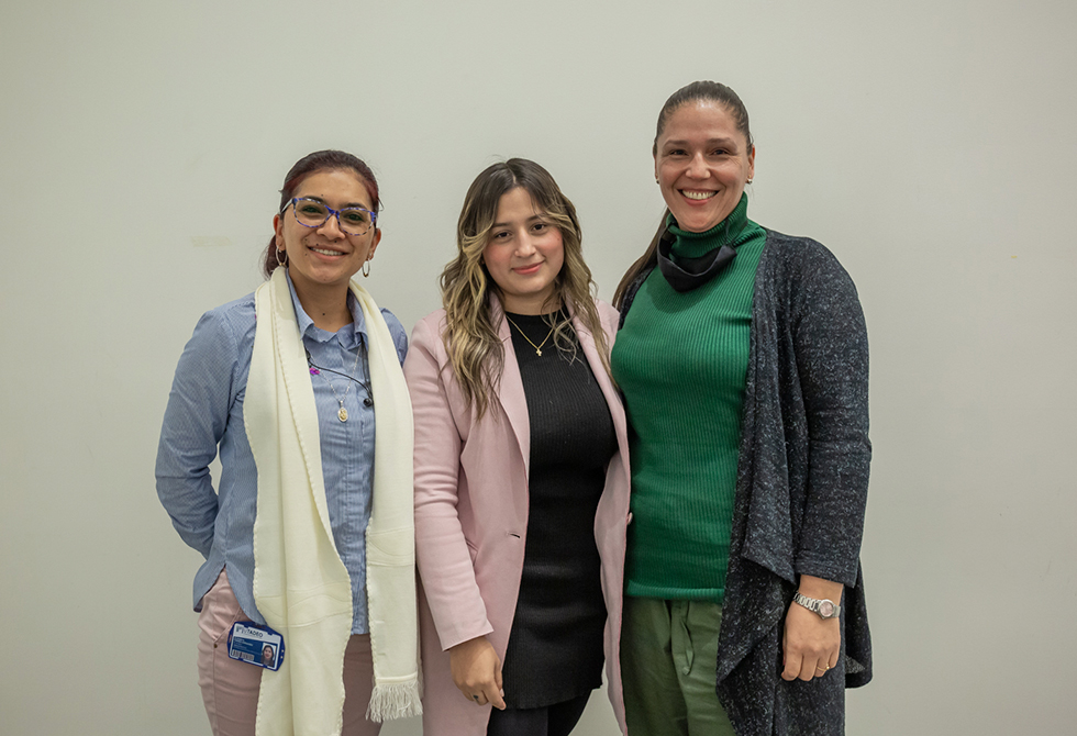 Elizabeth Torres (secretaria de Vicerrectoría Académica), Carolina Gómez (secretaria de la Jefatura de Investigación) y Adriana Guzmán (secretaria de la decanatura de la Facultad de Ciencias Sociales).