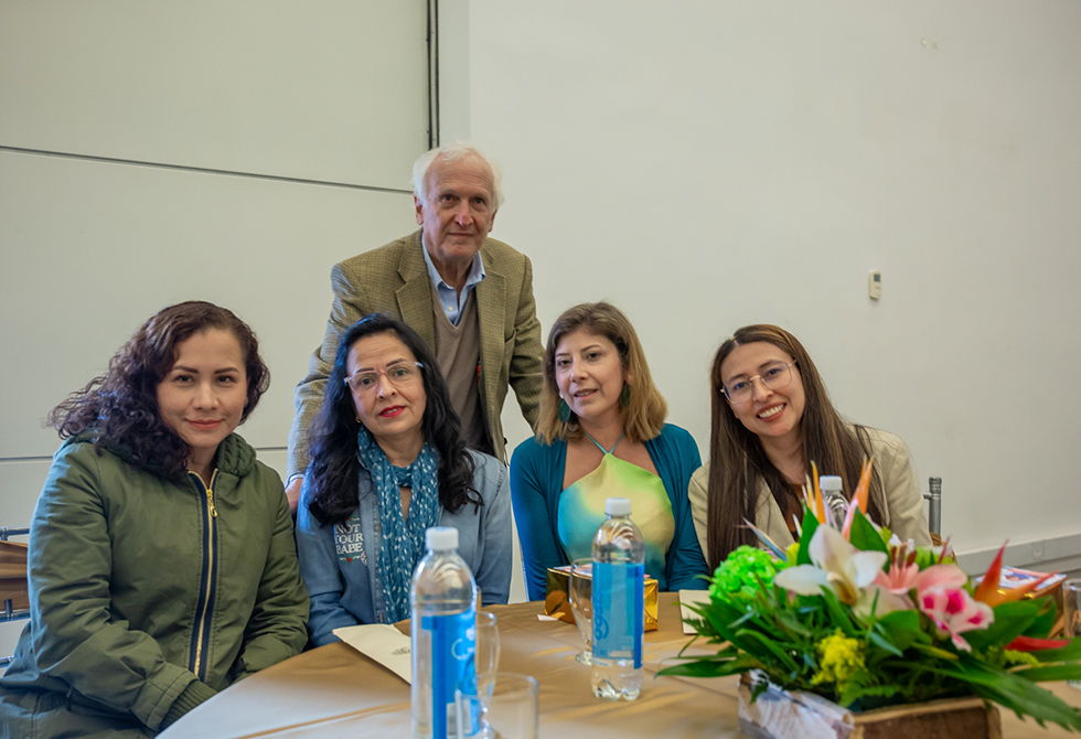 Laura Ávila, Eliana Pineda y Luz Carrillo con el decano Alejandro Molano de la Facultad de Ciencias Sociales.