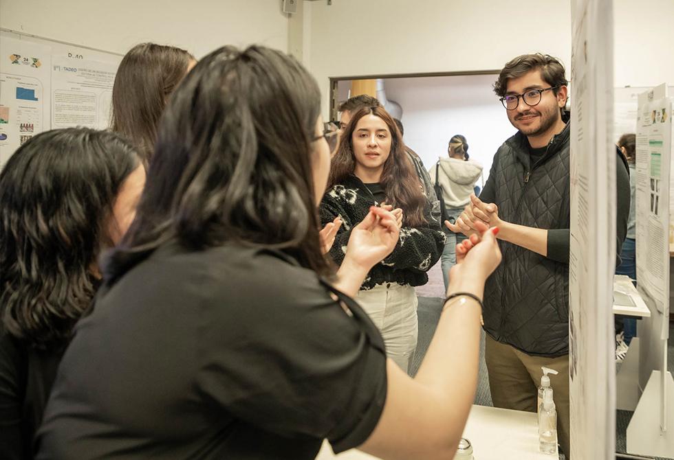 La exposición de la muestra “Somos Trayectoria” fue un espacio en el que los trabajos de los estudiantes fueron los protagonistas. Hubo reconocimientos y palabras de admiración para quienes han hecho parte durante estas décadas del Diseño Gráfico de Utadeo.