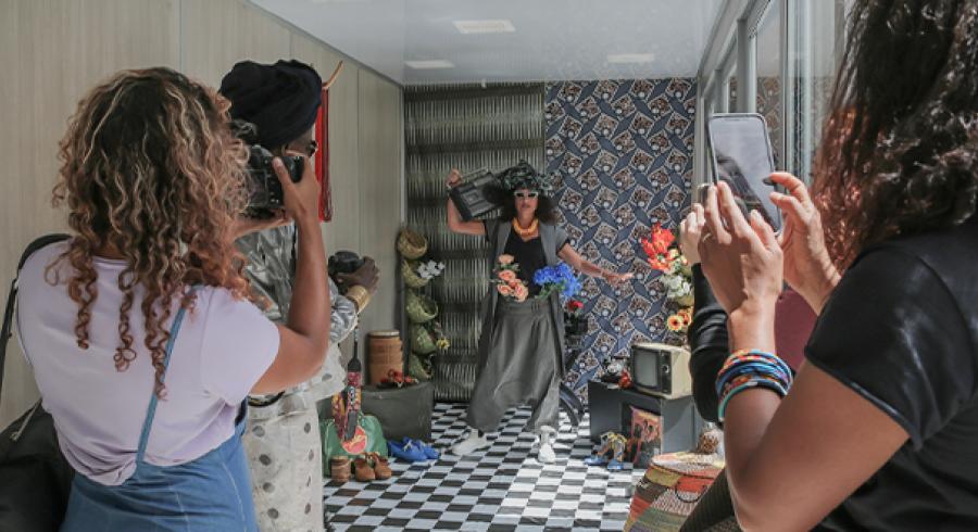 En su primera visita a Latinoamérica, la reconocida fotógrafa maliense, Fatoumata Diabaté, presentó en Utadeo su “Estudio Fotográfico de Calle”, un escenario perfectamente adecuado en donde la artista interactuó con las personas, vistiéndolos con accesorios de los años 60, 70 y 80 y tomándoles una fotografía a blanco y negro, al mejor estilo de la época, la cual se llevaron como recuerdo.