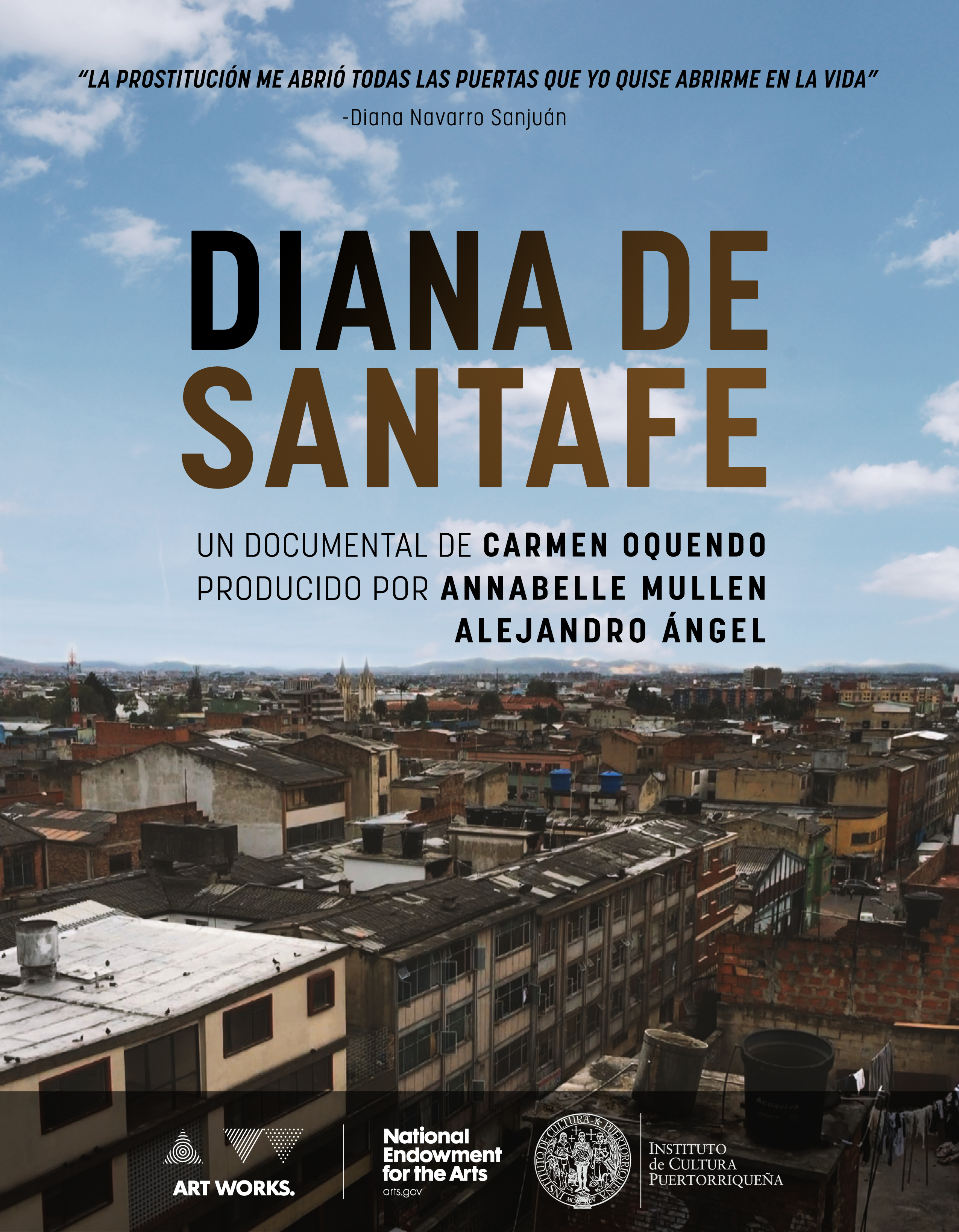 Diana de Santa Fe retrata la historia de Diana Navarro Sanjuán, una activista y líder trans del barrio Santa Fe, ubicado en el centro de Bogotá. El documental, que cuenta con un componente transmedia, es una producción de Armadillo: New Media & Films de Colombia, Canela Films de Puerto Rico y Belle Films de República Dominicana y se realiza con el apoyo de estudiantes del Programa de Cine y Televisión de Utadeo y de la Universidad Interamericana de Puerto Rico (UIPR), donde la directora del documental, Carmen Oquendo-Villar, es profesora.