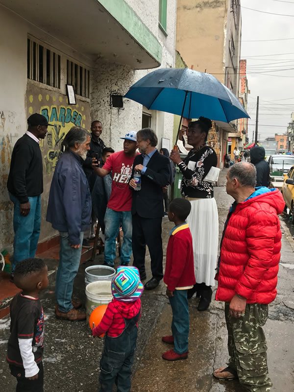 También es el lugar donde vienen muchos inmigrantes. Dentro de un país que está al borde de terminar este conflicto armado, es un lugar donde entraban y salían muchos desplazados que pertenecían a la guerrilla, a los cuerpos paramilitares, es como un microcosmos de Colombia pero intensificado.