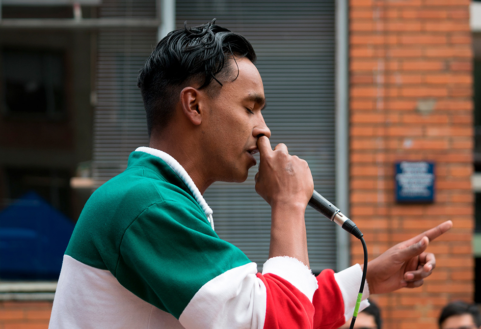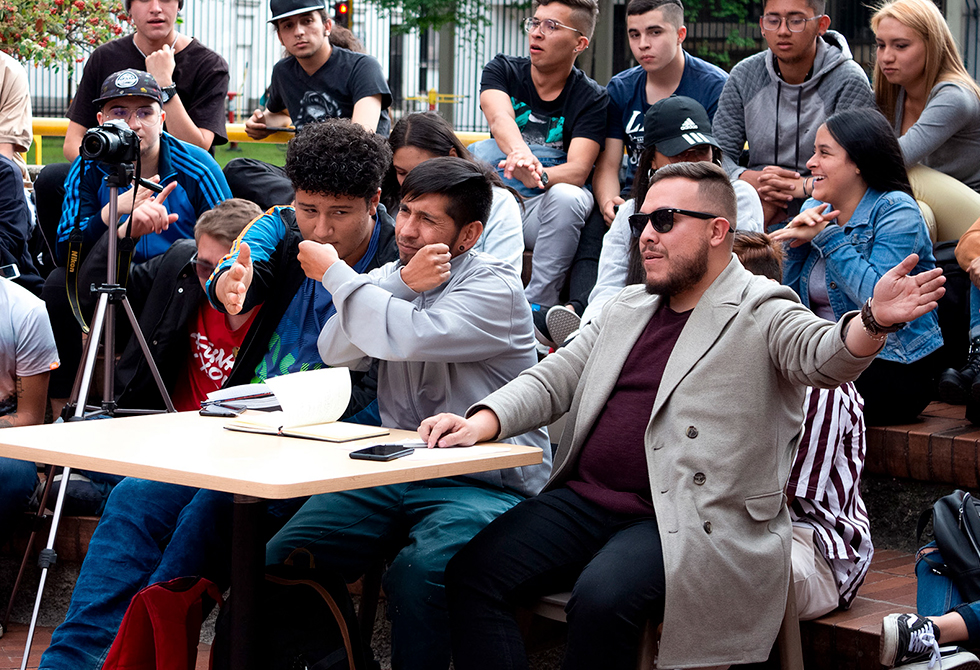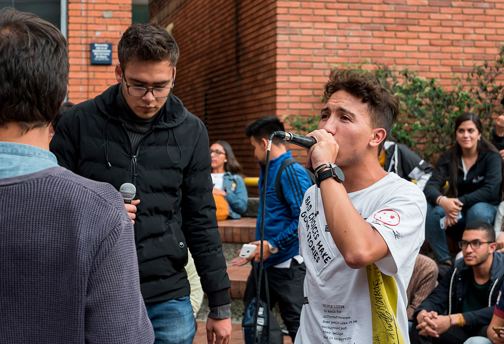 Esta iniciativa de los estudiantes de rap del Centro de Arte y Cultura se hizo realidad cada miércoles a la 1:00 p.m., momento en que el conteo ¡3, 2, 1, Fuego! daba inicio a la batalla de rimas en La Fogata Freestyle.