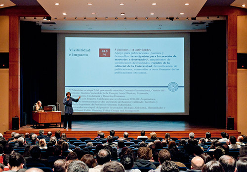 La universidad formativa en acción; la Tadeo investigadora, creativa e innovadora; la Tadeo internacional y multicultural; la Tadeo modelo de gestión y calidad; la Tadeo y su impacto en la sociedad; y la Tadeo visible, fueron los componentes en los que se enfocó la Rectora y en las que destacó las acciones realizadas.