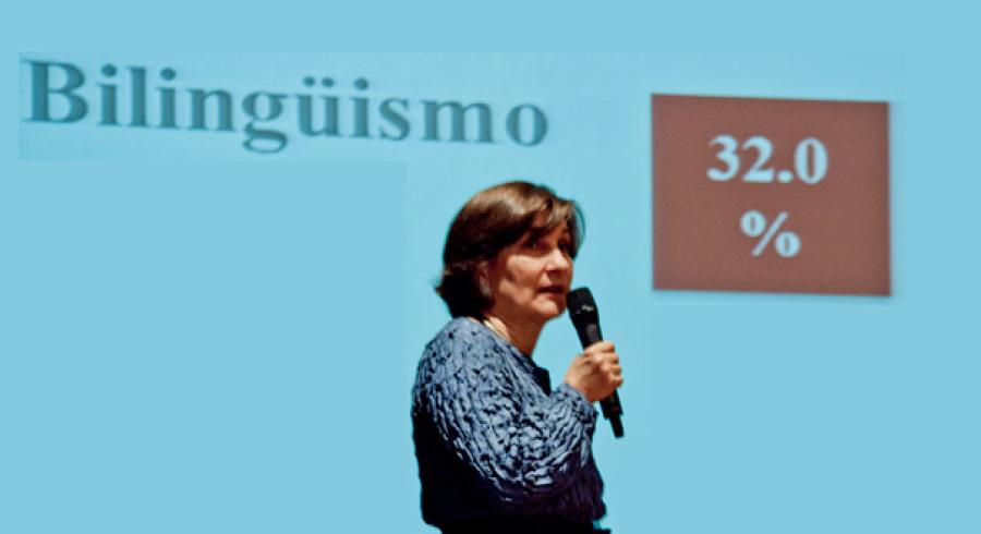 Cecilia María Vélez, Rectora de la UJTL, explicó los alcances hasta octubre de 2013, del Plan de Mejoramiento Institucional y cada uno de sus componentes, en una actividad que se llevó a cabo con los profesores de la Tadeo, en el Aula Máxima.