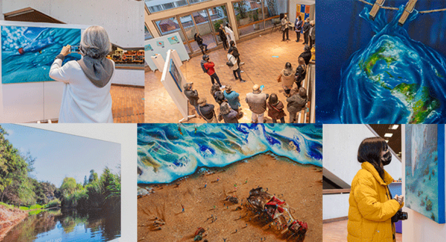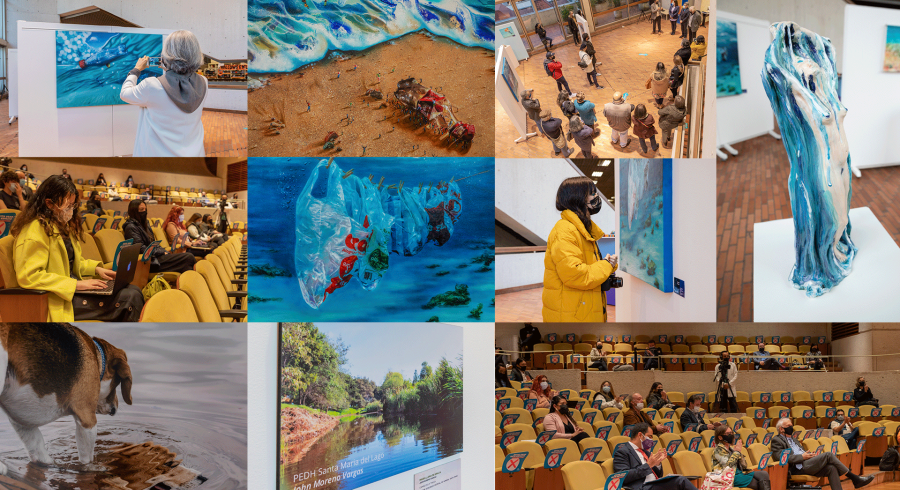 - "Voces del agua" se lleva a cabo del 12 a 28 de octubre en el tercer piso de la biblioteca de Utadeo.Bajo la filosofía de ser una Universidad de puertas abiertas para la comunidad en general, Utadeo sigue abriendo sus espacios físicos para volvernos a reencontrar con el arte, la cultura y la ciencia en los escenarios más propicios.Las Voces del Agua, se suma a las diferentes muestras artísticas, con las que la Facultad de Artes y Diseño ha empezado a reactivar la vida universitaria.Con las fotografías de la obra "Encharcado azul" (De la serie Historias líquidas, momentos lúcidos del mundo subacuático), el docente de Utadeo, Camilo Monery, participó en Alma de la Tierra.Camilo Becerra, fotógrafo colombiano, participó con su obra fotográfica donde reflexiona acerca de la contaminación de mercurio en el planeta.Christian Schrader, director del Área Académica de Publicidad, es uno de los docentes y artistas tadeístas que participan en esta muestra con su obra: Con el agua al cuello..El artista cubano Silvio Martínez lleva dos décadas trabajando en el tema del medio ambiente y abordando el agua como elemento fundamental para la vida y para sus obras. En sus pinturas, sugiere elementos surrealistas con mensajes de reflexión a la contaminación que hacemos los seres humanos al planeta."Myriam, la mujer del agua" es una pieza que se destaca por su historia hebrea que está contada en la Biblia de una manera contemporánea, porque le da un punto central al personaje femenino, en donde el arte resalta a la mujer como organizadora de la existencia social, su creadora: Vicky Possin.