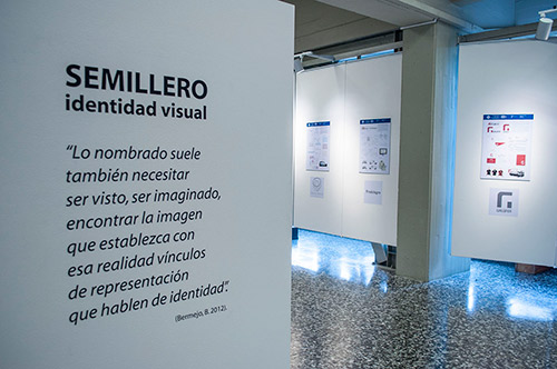 Sobre la exposición inaugural de identidad visual, Pastora Correa destacó que “no podemos dejar de lado a nuestros protagonistas, los estudiantes, entre los que se destacan Steven Porras, líder del Semillero de Investigación en Identidad y a la monitora Danitza García, quien además de colaborar con el montaje, también participa en la muestra con unos de sus proyectos”.